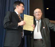 Dr. Horst Müller, stellvertretender Vorsitzender des HOG-Verbands, zeichnete Siegbert Bruss mit der Goldenen Ehrennadel des HOG-Verbands für seine langjährige ehrenamtliche Tätigkeit als Vorsitzender der „Dorfgemeinschaft der Brenndörfer“ (seit 2003) und verantwortlicher Redakteur der Briefe aus Brenndorf (seit 1991) aus. „Er ist sehr engagiert in der Pflege der Gemeinschaft, der Stärkung des Bewusstseins für unsere siebenbürgisch-sächsische Herkunft und Geschichte und geht offensiv auf die Bedürfnisse unserer Landsleute ein“, heißt es in der Urkunde