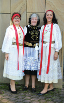 Meine Schwester und ich trugen die cremefarbene Mädchentracht, meine Mutter die schwarze Frauentracht. Ich durfte die Tracht auch auf der Bühne präsentieren und wie folgt beschreiben: