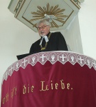 Die Predigt hielt Synodialsenior Daniel Ženatý von der Evangelischen Kirche der Böhmischen Brüder, der mit seiner Gattin aus Prag (Tschechien) angereist war. Seine Predigt ging vom Psalm 103, 1-2 („Lobe den Herrn, meine Seele, und was in mir ist seinen heiligen Namen, lobe den Herrn, meine Seele, und vergiss nicht, was er dir Gutes getan hat“) aus.