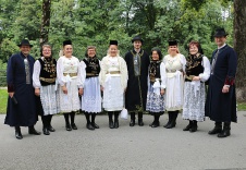 Die Familien Betina und Thomas Nikolaus (Heldsdorf) sowie Ines und Helmut Wenzel (aus Heldsdorf und Zeiden) gehen ganz vorne und flankieren Udo Buhn, der das Schild trägt. In den beiden siebenbürgisch-sächsisch geschmückten Leiterwagen nehmen ihre Kinder (Hanna, Max und Luna), alle in jungsächsischer Tracht, gemütlich Platz. Die beiden Frauen tragen zu ihrer Festtracht den Kirchenmantel und zeigen die Kopfbedeckung, die im Burzenland im letzten Jahrhundert gewöhnlich nur von den jungen Frauen am Hochzeitstag und ein paar Sonntage danach getragen wurde. „Die Schleierung, mit dem meist roten Schleier und den beeindruckend vielen, diademartig angerichteten Bockelnadeln, ist die einzige Form der Bockelung, die im Burzenland erhalten geblieben ist, und zählte früher zu den besonderen Festtagsbockelungen, die z.B. auch von den Brautfrauen getragen wurde“, erläutert Ines Wenzel.