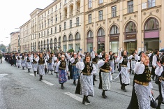 „Immer wieder musste ich mich zu den hübschen, freundlich lächelnden und winkenden Mädchen hinter mir umdrehen, die vor Freude und Stolz sprühten. Dieser Funke sprang auch auf die beeindruckend große Zuschauermenge über, die sich entlang der sieben Kilometer langen Strecke aufreihte. Die Reaktionen aus dem Publikum waren, wie immer wenn wir irgendwo unsere Trachten zeigen, großartig“, sagt Ines Wenzel, die bekanntlich den jährlichen Trachtenumzug in Dinkelsbühl moderiert – zusammen mit Helge Krempels, der ebenfalls mit seiner Familie in München dabei ist.