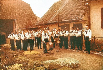 Als die Musiktradition, nach kurzer Unterbrechung, in Deutschland weitergeführt wurde, war Walter Dieners wieder an vorderster Stelle dabei. Beim großen Nachbarschaftstag der „Dorfgemeinschaft der Brenndörfer“ im September 1991 dirigierte er die Kapelle, die die Anwesenden im voll besetzen Schrannensaal in Dinkelsbühl mit einem Ständchen überraschte. Seither spielte die Blaskapelle bei allen großen oder regionalen Treffen der „Dorfgemeinschaft der Brenndörfer“. In den neunziger Jahren wirkte die Blaskapelle vier Mal am Festumzug des Heimattages in Dinkelsbühl mit, erinnert sich Georg That, der zusammen mit Otto Gliebe die organisatorische Leitung der Blaskapelle inne hatte.